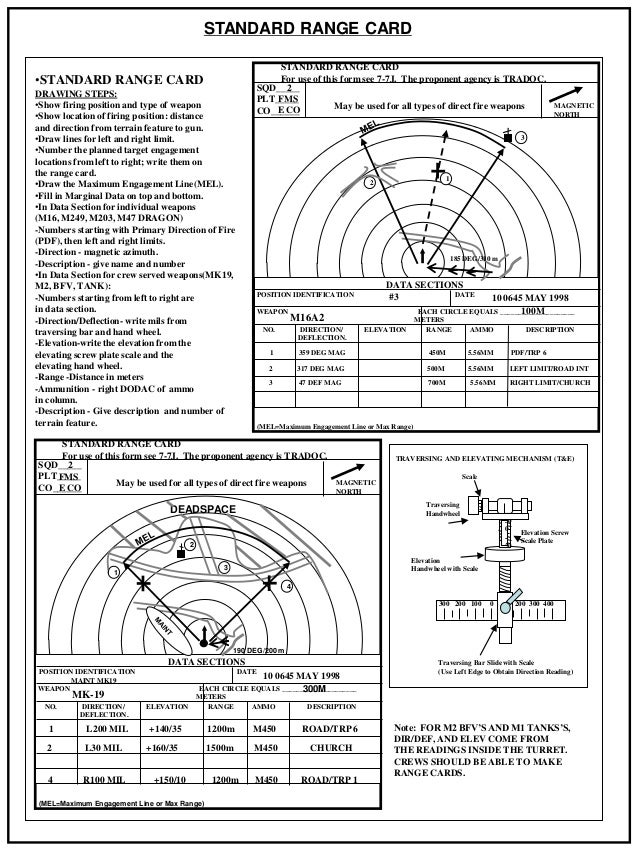 Defend Range Card Preparation Armystudyguide Com Survival Skills Tactical Gear Survival Tactical Shooting Drills from i.pinimg.com The latest technologies high quality electronic pubs and forms view u.s. A range card aids in planning and controlling fires and aids the crews and squad gunners in acquiring targets during limited visibility. The m16a2 is a standard rifle for military branches. The firer will remain in the same firing lane throughout the cpqc. Laying the gun for fpl. 1.lock t&e down on zero. This form is also known as a record fire scorecard. (1) center the machine gun position at the bottom of the sketch.