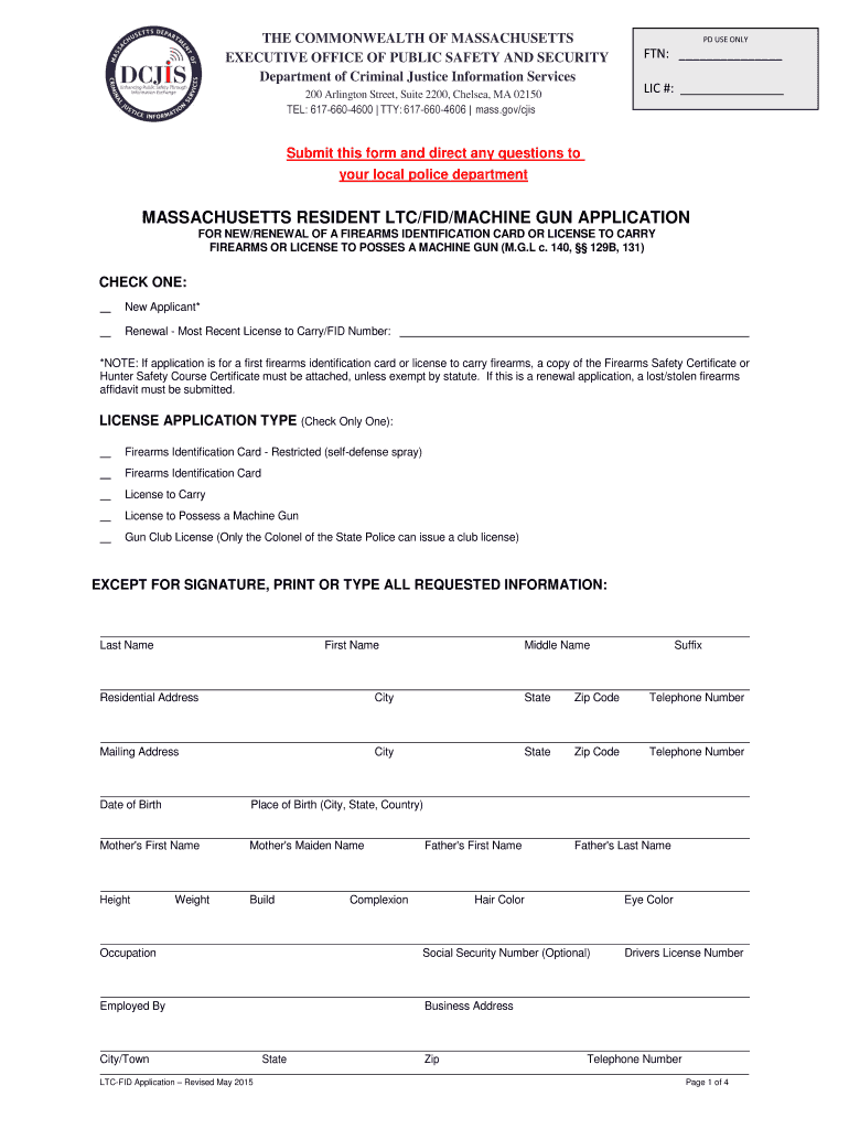 The procedure is as follows:. If you are applying for a new license to carry or a new fid card, you must have a certificate. License to carry (ltc) and firearm identification card (fid) applications are issued by appointment only. Massachusetts firearms law and information. You must apply for a resident firearms license to carry or firearms identification card through the police department in the town where you reside.